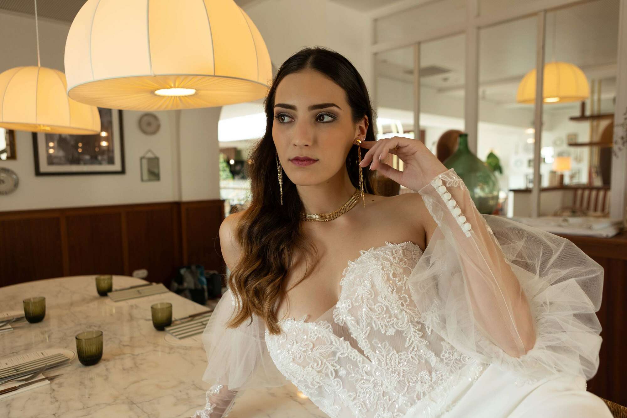 (Lieu : IDA restaurant, Robe : Les mariées de Laurane, Coiffure : Les essentielles, Maquillage : Institut Auria, Bijou : Pour toi by moi, modèle : Emma Guibert, photo : Aurélie Brunet)
